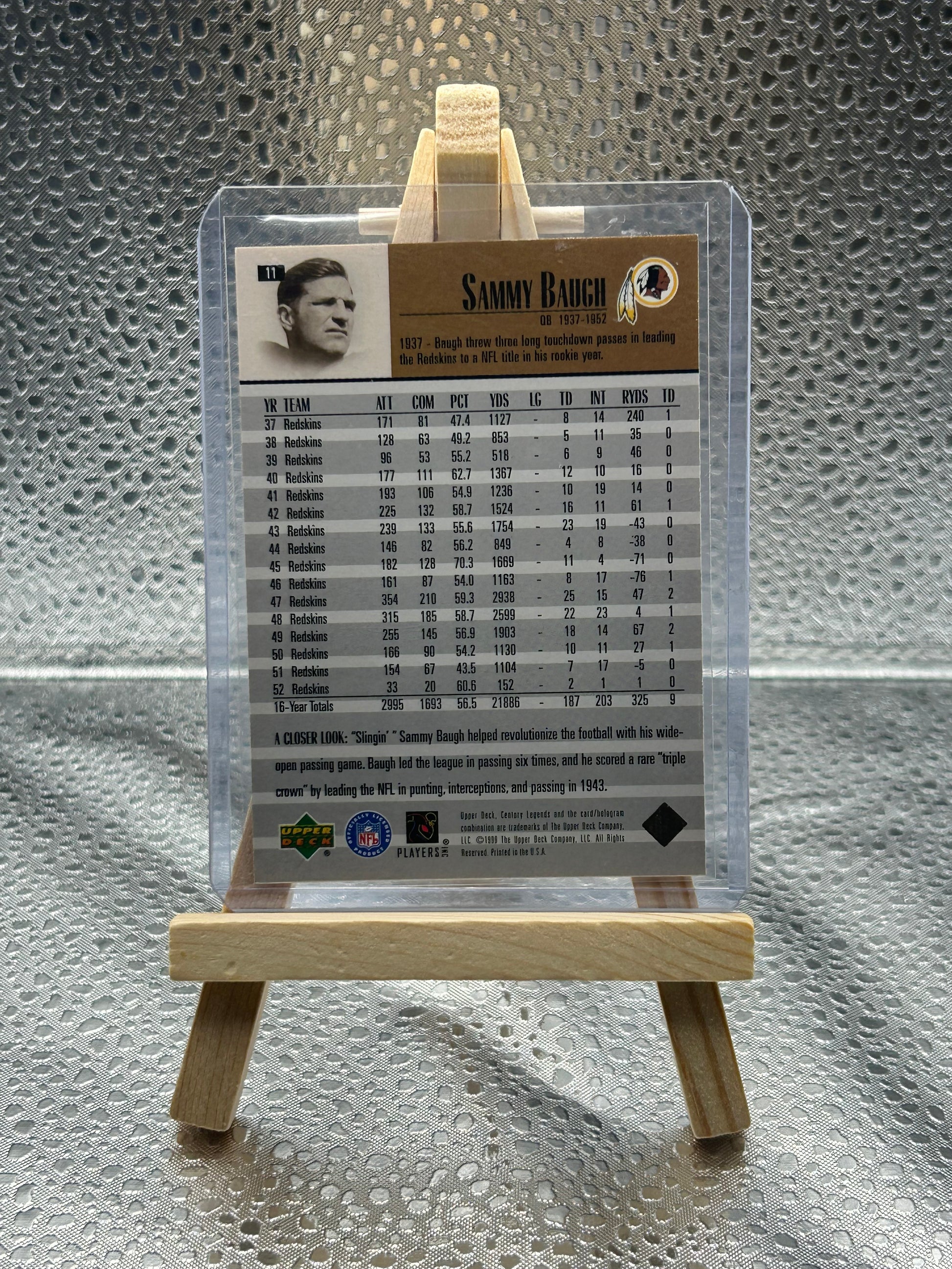 1999 Upper Deck Century Legends Sammy Baugh Washington Redskins.