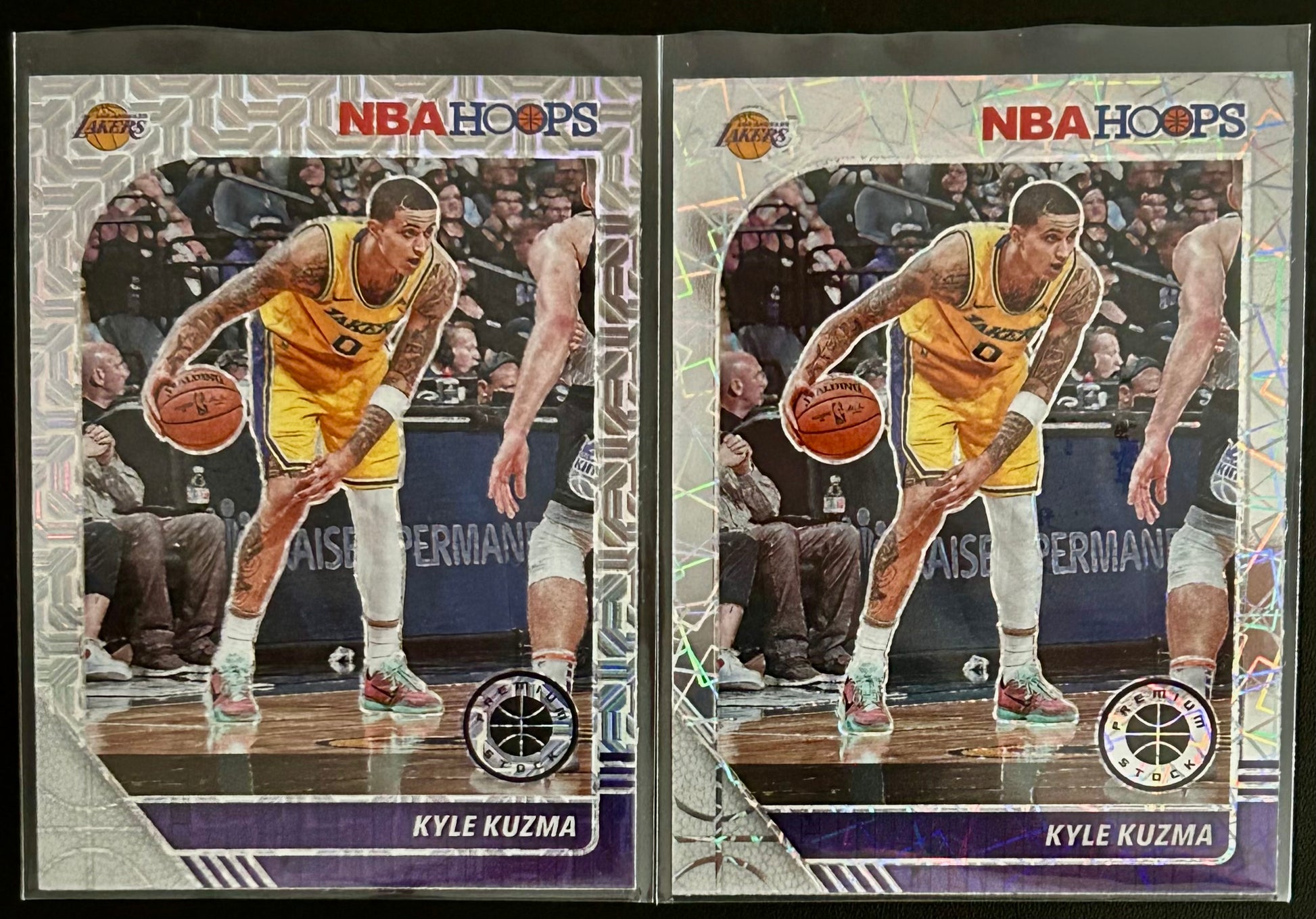 2019-2020 Panini Hoops Premium Stock Basketball Kyle Kuzma 2 card collection. Comes with two different parallel cards.
