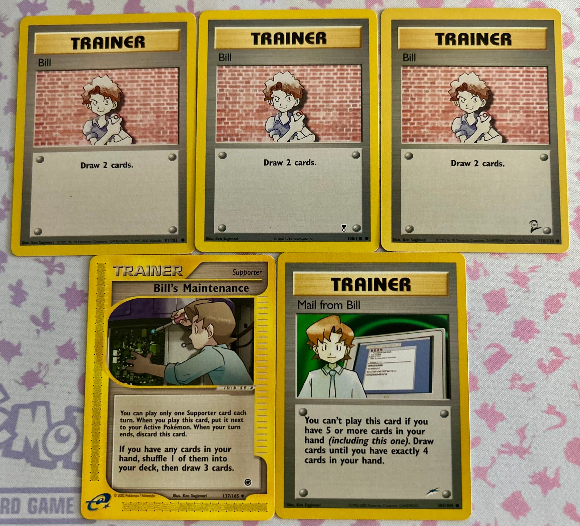 5 Card Pokemon Card Lot involving Bill. Comes with 5 cards from 5 different Pokemon card sets. All are in NM-LP condition.