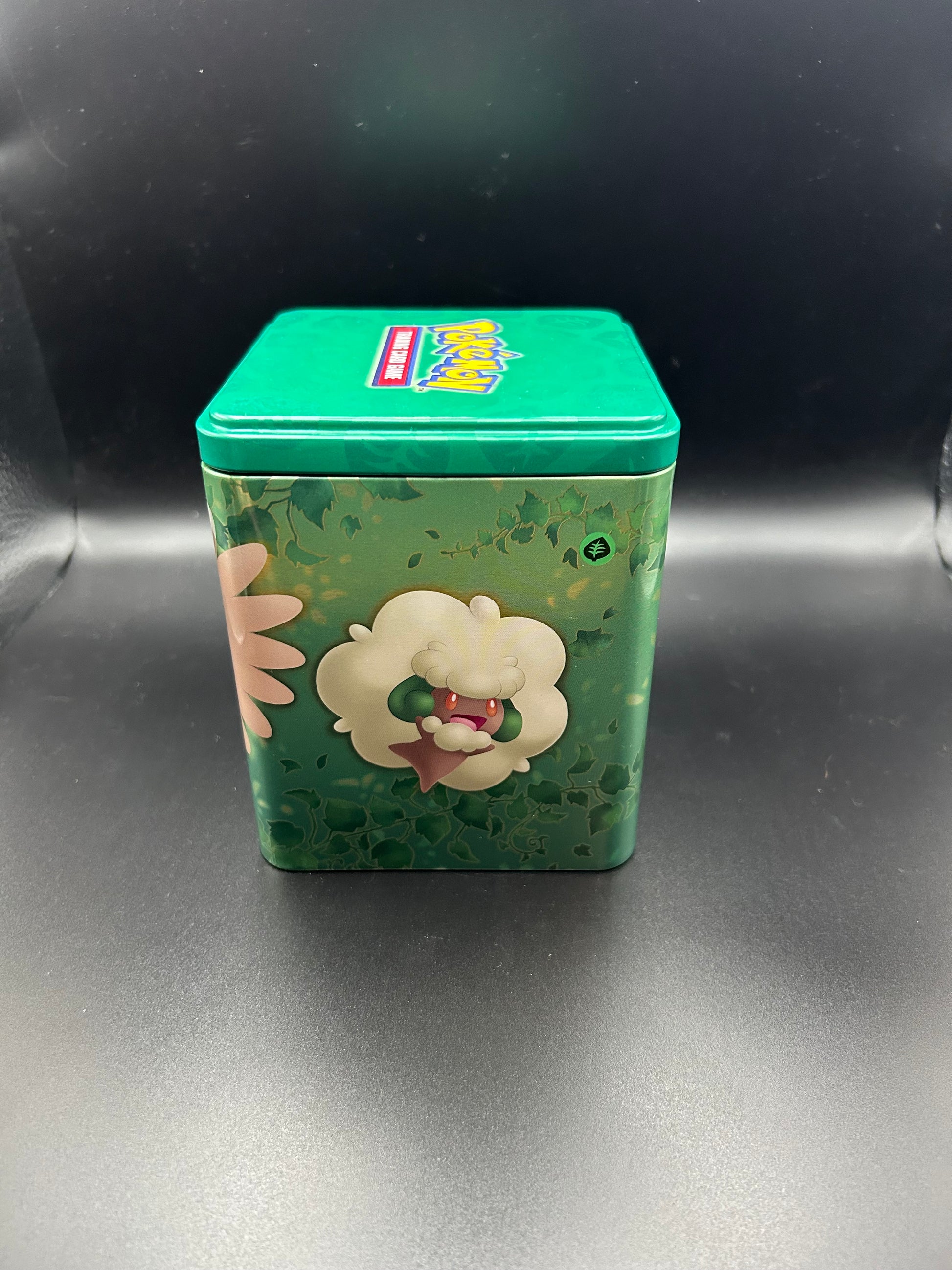 Pokémon stacking tin comes with 22 Cards made up of 1 Full art Gx promo card, 1 full art V card, 1 reverse holos, basic Pokemon cards,5 trainers, 10 energy and one pokemon coin