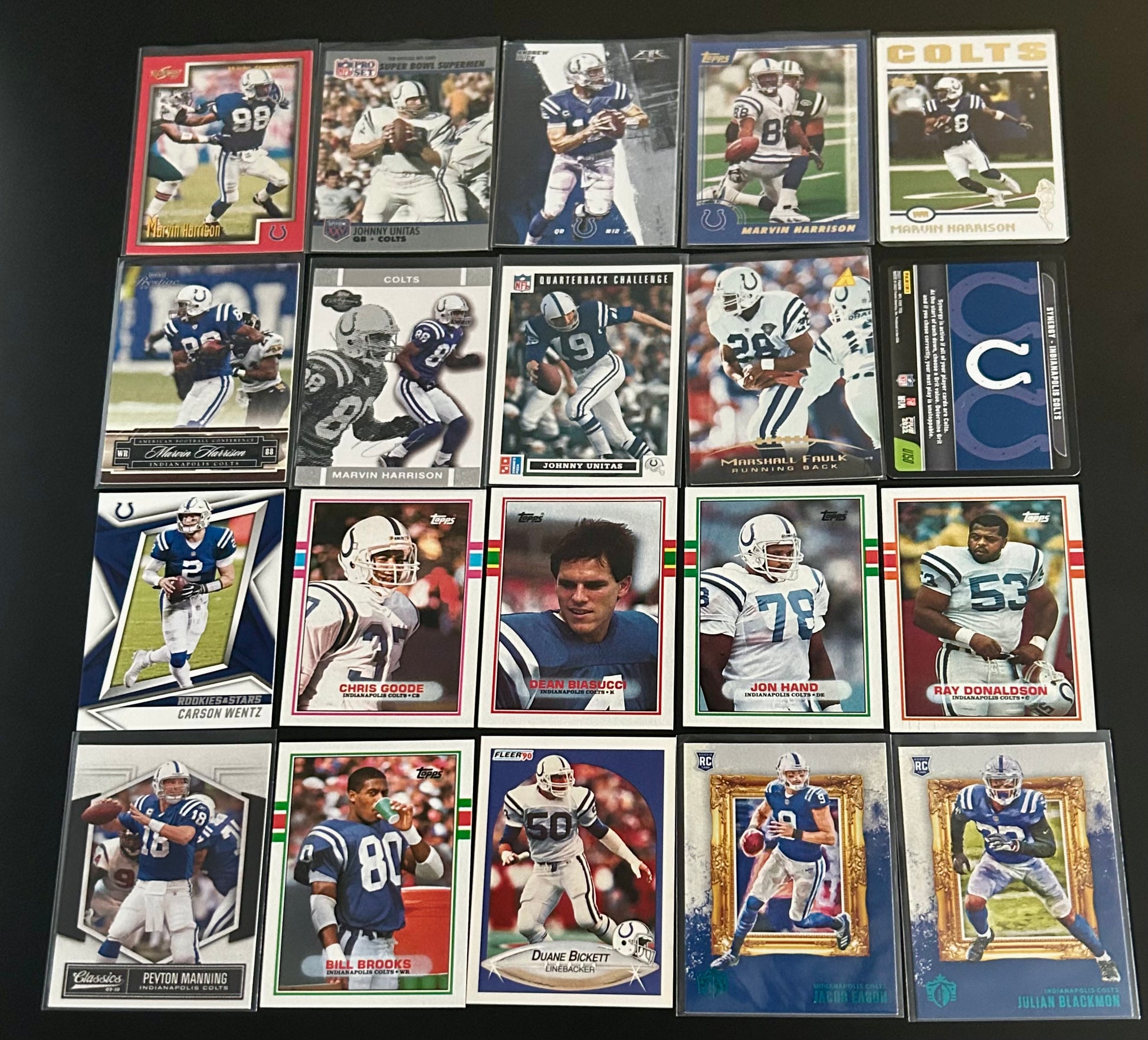Indianapolis Colts 20 card lot with different sets, players, rookie cards and parallels.